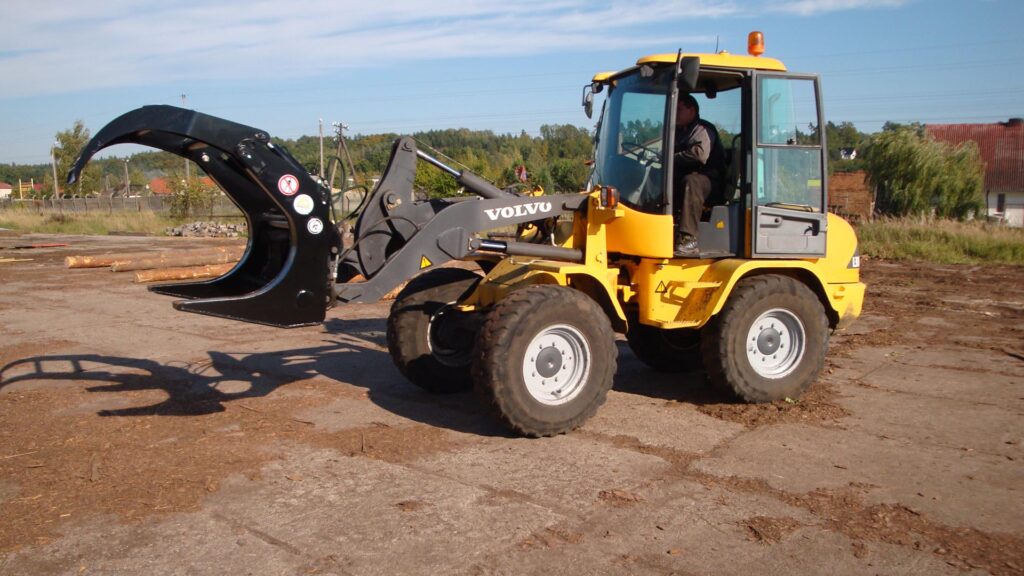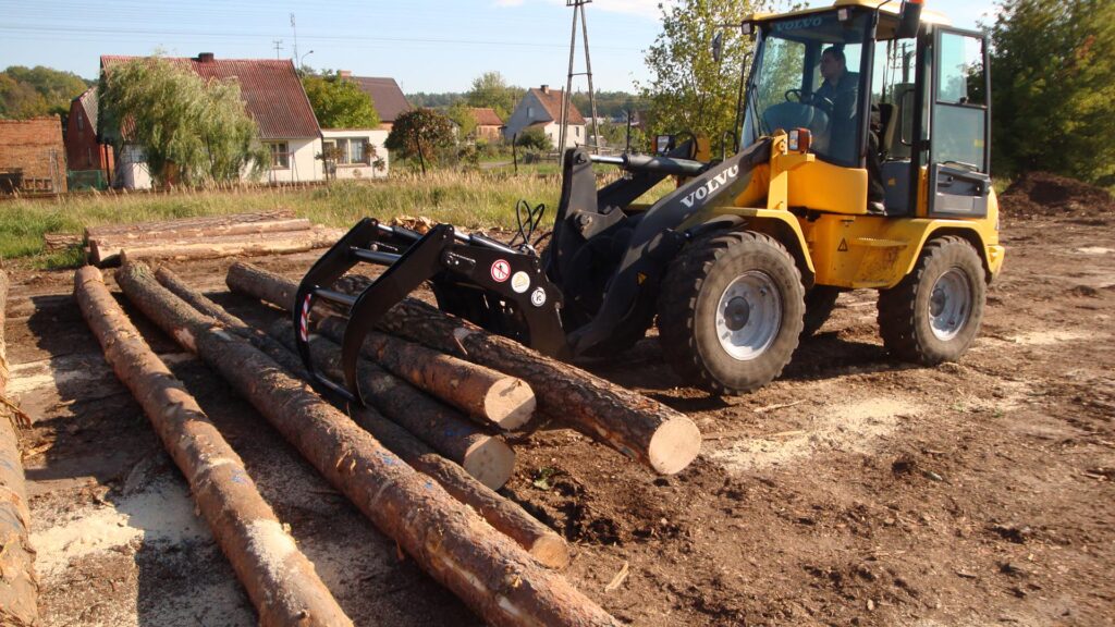 Graifer busteni vola, buldoexcavator si incarcator frontal de tractor